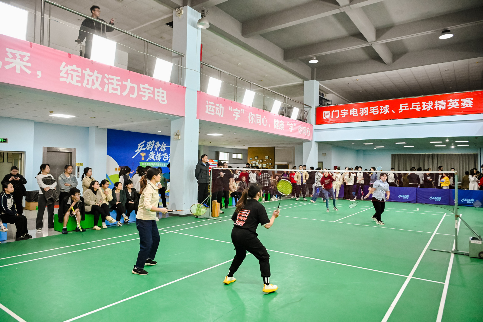 賽場(chǎng)顯身手,健兒爭(zhēng)榮耀。2025年元旦,正逢冬日暖陽(yáng)天,“乒羽爭(zhēng)鋒,激情飛揚(yáng)”宇電精英球賽拉開帷幕。參賽員工活力四射,啦啦隊(duì)熱情洋溢,有對(duì)抗、有激情、有溫度。宇電新年運(yùn)動(dòng)盛會(huì) 火熱上演啦! 2025 年宇電元旦“迎新”運(yùn)動(dòng)會(huì)熱情開燃 新年第一天,宇電人最愛的兩個(gè)項(xiàng)目——乒乓球單打、羽毛球雙打同時(shí)火熱開賽。裁判和參賽人員就位后,比賽正式開始!強(qiáng)者爭(zhēng)鋒誰(shuí)可奪魁?快隨我們一起欣賞選手們的熠熠風(fēng)采吧!2025 宇電運(yùn)動(dòng)會(huì)精彩現(xiàn)場(chǎng)自2006年喬遷宇電科技大廈,宇電每年都會(huì)舉辦乒乓球、羽毛球賽。今年,活動(dòng)現(xiàn)場(chǎng)更加火熱。比賽掀起陣陣熱潮,掌聲、吶喊聲此起彼伏?!居鹈虮荣惉F(xiàn)場(chǎng)】比賽正式開始后,參賽運(yùn)動(dòng)員們個(gè)個(gè)精神抖擻,目光堅(jiān)毅緊盯著來回穿梭的羽毛球。搓球、撲球、吊球、扣殺!運(yùn)動(dòng)員們紛紛亮出 “拿手” 球技,比技巧、拼體力各展其能、釋放出強(qiáng)勁實(shí)力。每一次攻防換位,隊(duì)友都是彼此堅(jiān)強(qiáng)的保障,每一場(chǎng)比拼都是
