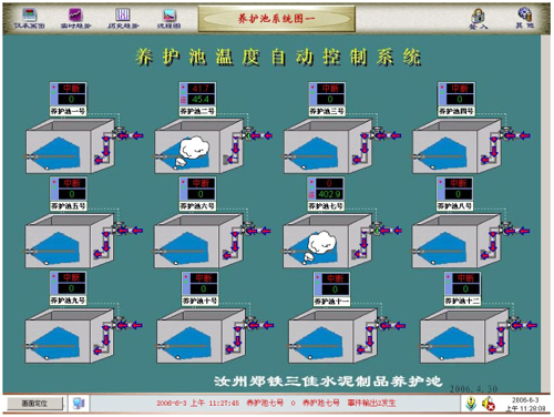 【水泥養(yǎng)護(hù)池1-12】的所有控制信息與數(shù)據(jù)信息都在控制室計(jì)算機(jī)上統(tǒng)一管理、分配。在計(jì)算機(jī)上對車間溫度進(jìn)行全方位的監(jiān)控,數(shù)據(jù)采集和各項(xiàng)事務(wù)的處理。