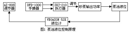 DFD-1000型電動操作器是采用“開關(guān)操作制”的原理進行手/自動的切換和操作的,當(dāng)切換開關(guān)處于手動位置時,①、②輸入端分別與⑾、⑿輸出端開路,由操作開關(guān)控制⑾、⑿端是否得電,并根據(jù)位置反饋信號的大小來控制通電時間的長短;當(dāng)切換開關(guān)處于自動位置時,①與⑾相通,②與⑿相通。而由AI-808調(diào)節(jié)器來控制執(zhí)行機構(gòu)ZJK-210,從而達到AI-808調(diào)節(jié)器根據(jù)液位變化來控制ZKJ-210角行程,調(diào)節(jié)砂泵輸出功率,穩(wěn)定泵池液位。