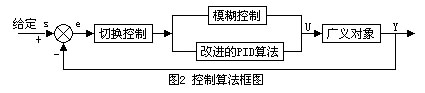 工業(yè)過程中常用的PID控制器適用于線性定常系統(tǒng),而供水系統(tǒng)的對(duì)象時(shí)常含有非線性、時(shí)變環(huán)節(jié),而且有些參數(shù)未知式緩慢變化,因此單獨(dú)采用PID控制較難達(dá)到理想的控制效果,AI人工智能調(diào)節(jié)器采用模糊控制和改進(jìn)PID相結(jié)合的雙??刂扑惴?,入圖2所示