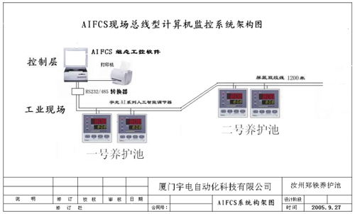 養(yǎng)護(hù)池溫度自動控制計(jì)算機(jī)監(jiān)控系統(tǒng)采用廈門宇光獨(dú)自開發(fā)的AI人工智能調(diào)節(jié)技術(shù)集合了PID調(diào)節(jié)和模糊控制技術(shù)優(yōu)點(diǎn),實(shí)現(xiàn)了自整定/自適應(yīng)功能。及無超調(diào)無參調(diào)的精確,調(diào)節(jié)AI-808P30段程序型人工智能工業(yè)調(diào)節(jié)器(V7.0),組建AIFCS現(xiàn)場總線型計(jì)算機(jī)監(jiān)控系統(tǒng)。