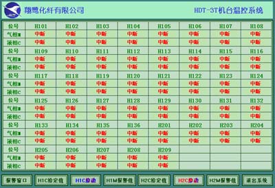 在滌綸紡纖后道生產(chǎn)工序中,每個(gè)滌綸拉絲HDT-3T假捻機(jī)臺(tái)有45個(gè)加熱缸存放聯(lián)苯熱媒分液相與氣相,所需控制的溫控加熱區(qū)共有45個(gè)液相,45個(gè)氣相檢測(cè)點(diǎn),為了對(duì)滌綸長(zhǎng)絲改變其物理特性,需要軟化過(guò)程,在滌綸拉絲HDT-3T假捻機(jī)臺(tái)加熱缸中的聯(lián)苯熱媒加熱控制來(lái)軟化長(zhǎng)絲創(chuàng)造拉升條件,不同的長(zhǎng)絲拉升軟化溫度不同。由于原機(jī)臺(tái)溫控系統(tǒng)老舊,控制品質(zhì)不高,不適應(yīng)制程要求,擬對(duì)現(xiàn)有T機(jī)臺(tái)的溫控系統(tǒng)進(jìn)行改造,每個(gè)T臺(tái)假捻機(jī)有45個(gè)加熱缸,分兩層:下層聯(lián)苯熱媒液相加熱控制輸出驅(qū)動(dòng)SSR至加熱管,上層汽相45個(gè)監(jiān)測(cè),每T臺(tái)控制系統(tǒng)有90個(gè)通道。經(jīng)系統(tǒng)改造采用AI調(diào)節(jié)器、AI巡檢儀通訊表與AI-2000液晶觸摸式工業(yè)平板電腦之間通訊,完全實(shí)現(xiàn)集中控制。一臺(tái)觸摸屏電腦可以同時(shí)與90個(gè)測(cè)控點(diǎn)通訊,通訊方式為RS-485串行通訊,這樣所有溫控表中的控制信息與數(shù)據(jù)信息都在觸摸屏電腦上統(tǒng)一管理、分配。